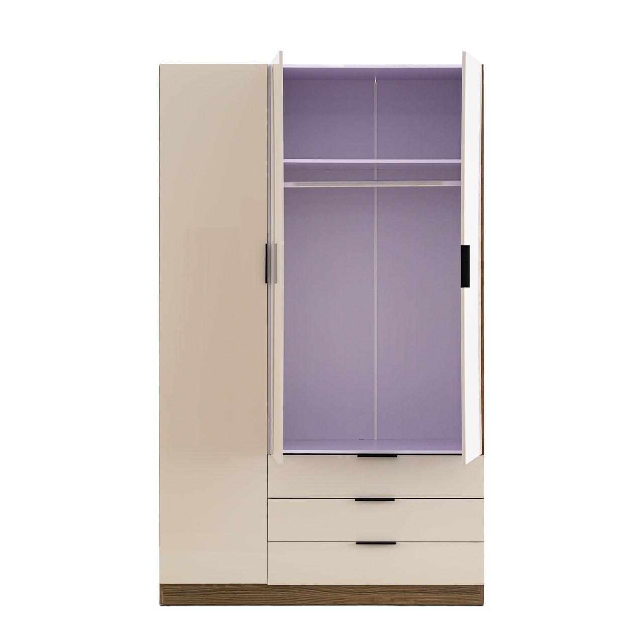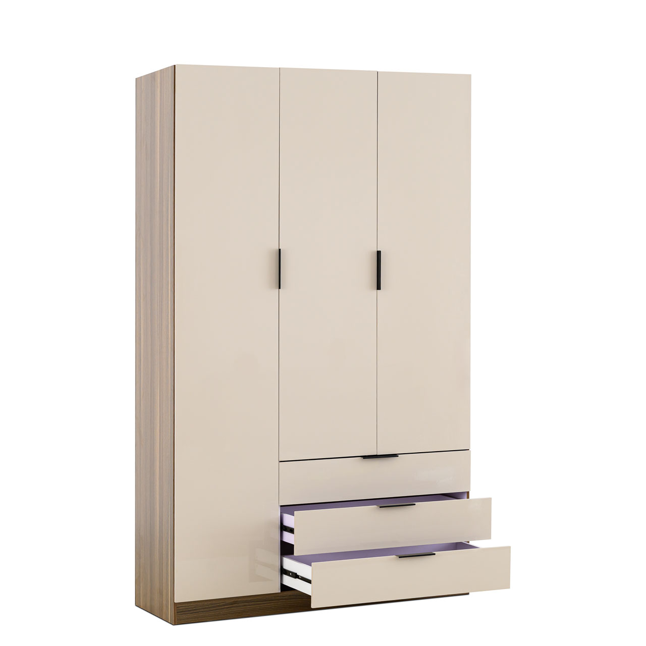- 3 Door Wardrobe – available in White or Cappuccino with Walnut finish