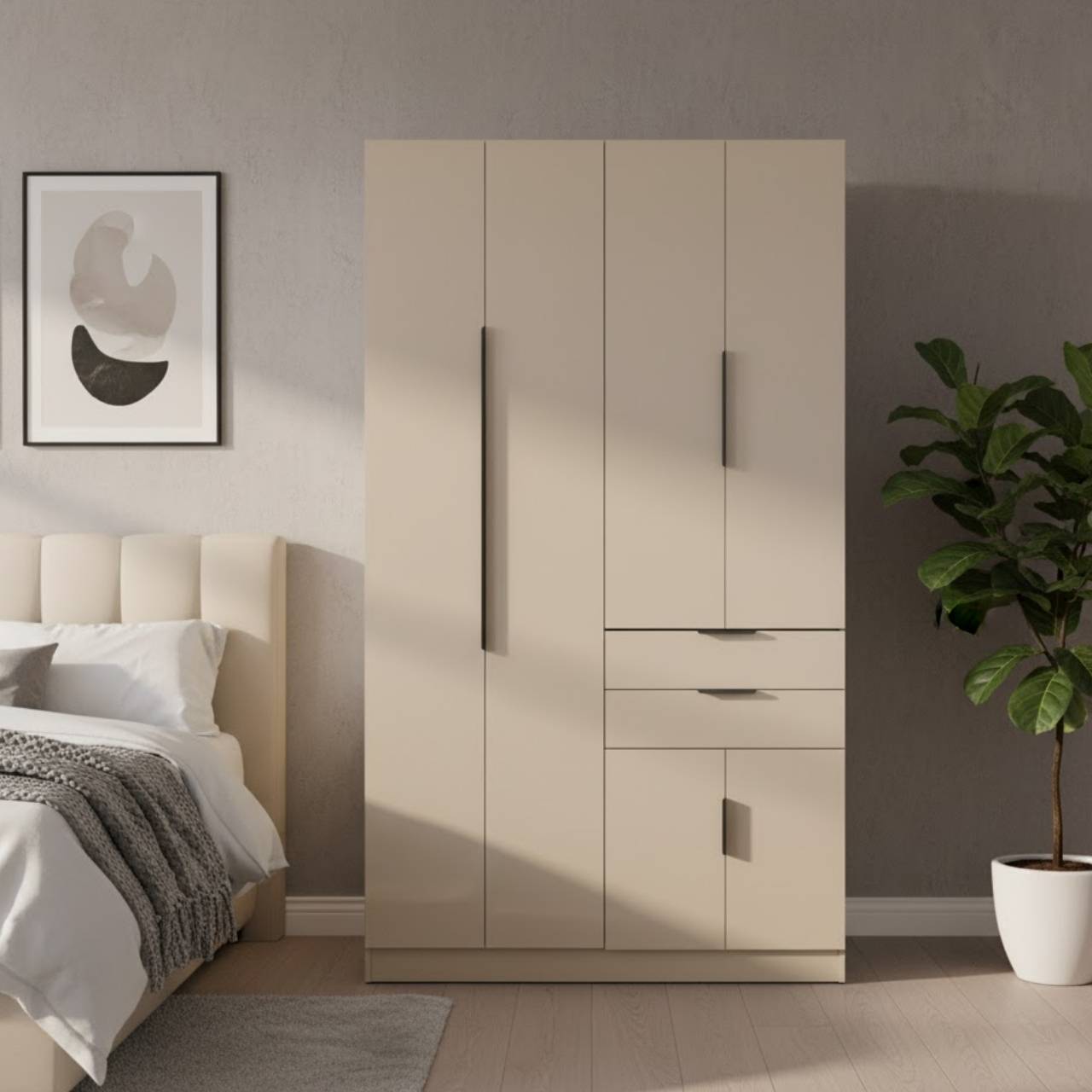 Upgrade your bedroom with the Contempo 4-Door Wardrobe, a modern storage solution that blends practicality with sophisticated design. Its sleek high gloss finish and clean lines create a polished look, making it a versatile choice for contemporary, classic, or minimal interiors.