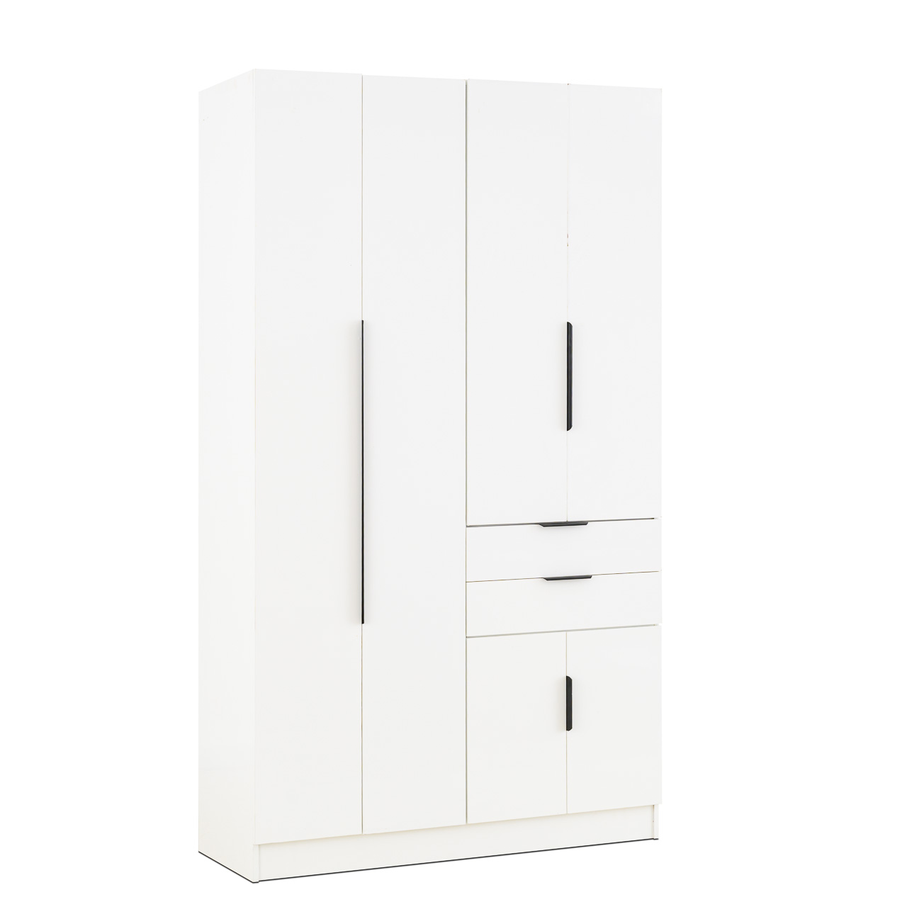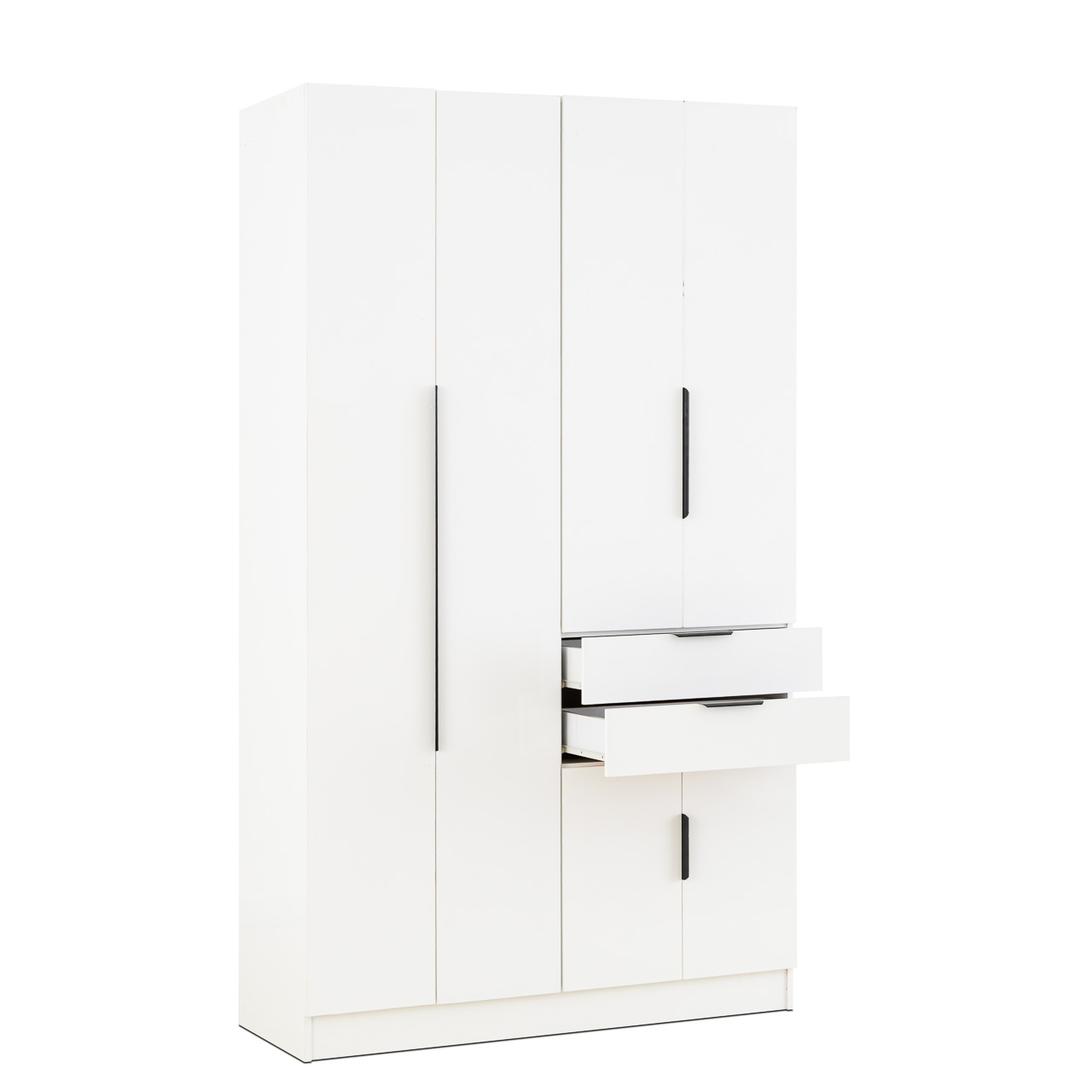 The Contempo 4-Door Wardrobe features four sturdy doors with black accent handles for a modern touch. Behind them, you’ll find a well-structured interior that provides ample room for hanging clothes, folded garments, shoes, and accessories. As a result, keeping your bedroom neat and clutter-free has never been easier.