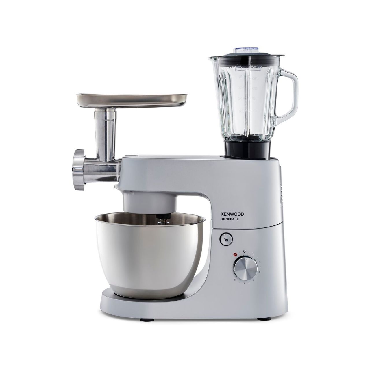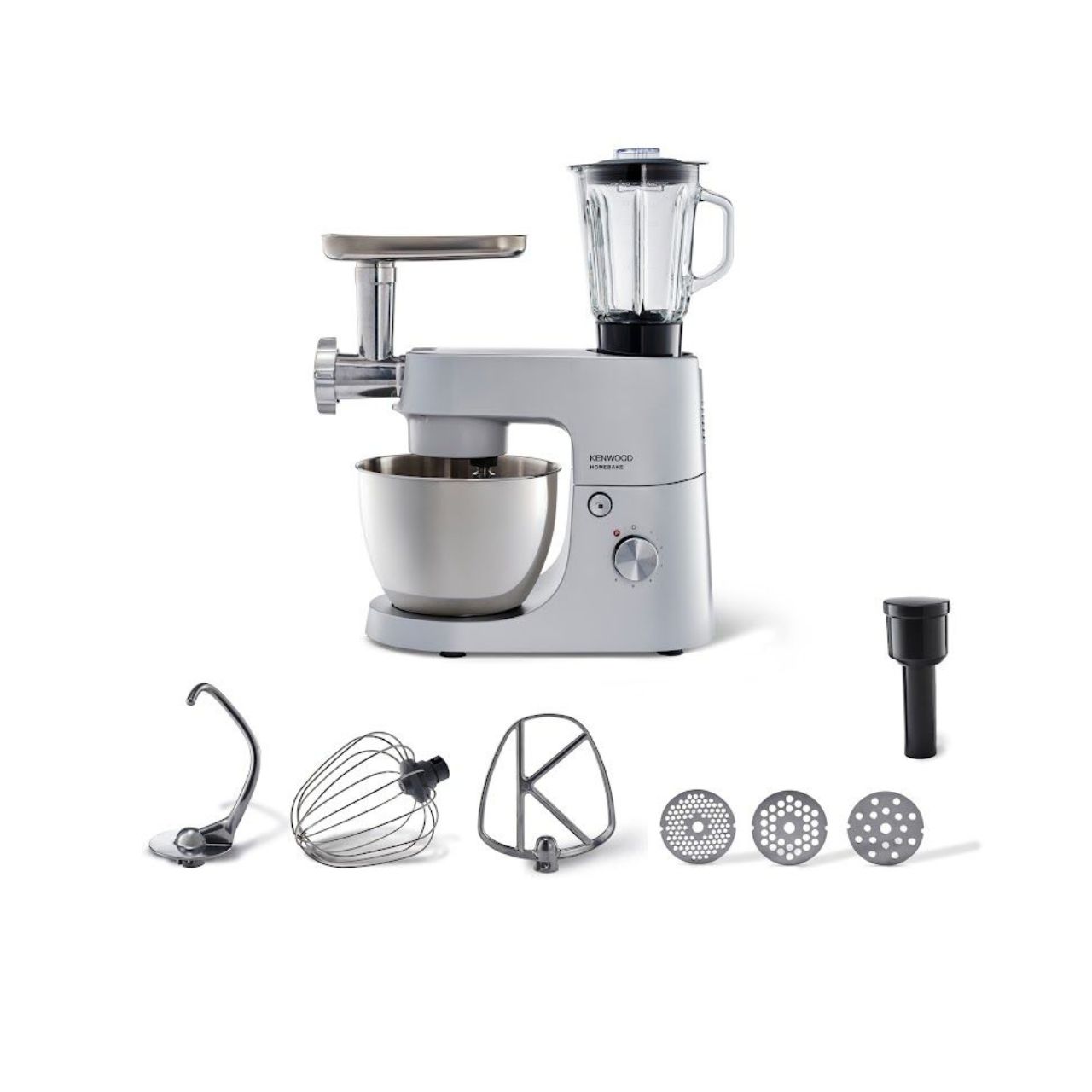 The Kenwood HomeBake KHH01.220SI is a powerful 1000W stand mixer with a 5L bowl, 1.5L blender, and built-in mincer. Ideal for baking, blending, and meal prep—all in one compact and stylish appliance.