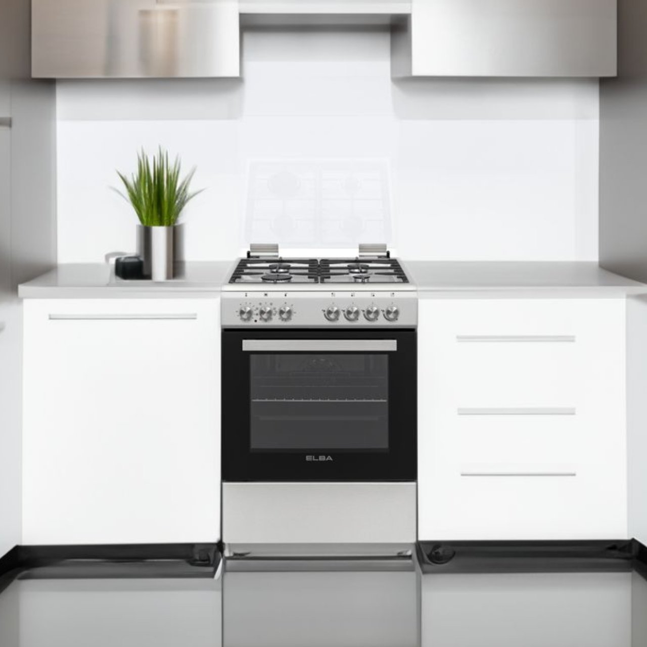 The ELBA 4 Burner Stove combines four gas burners with a 65L multifunction oven. Built in stainless steel with cast iron supports, it’s safe, stylish, and efficient.