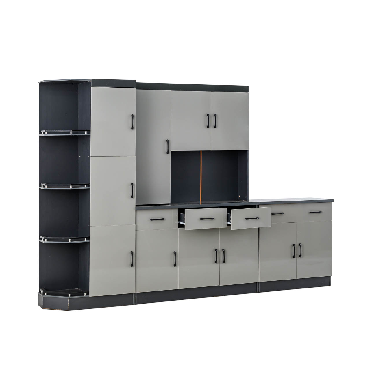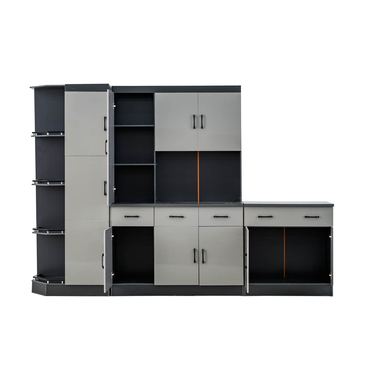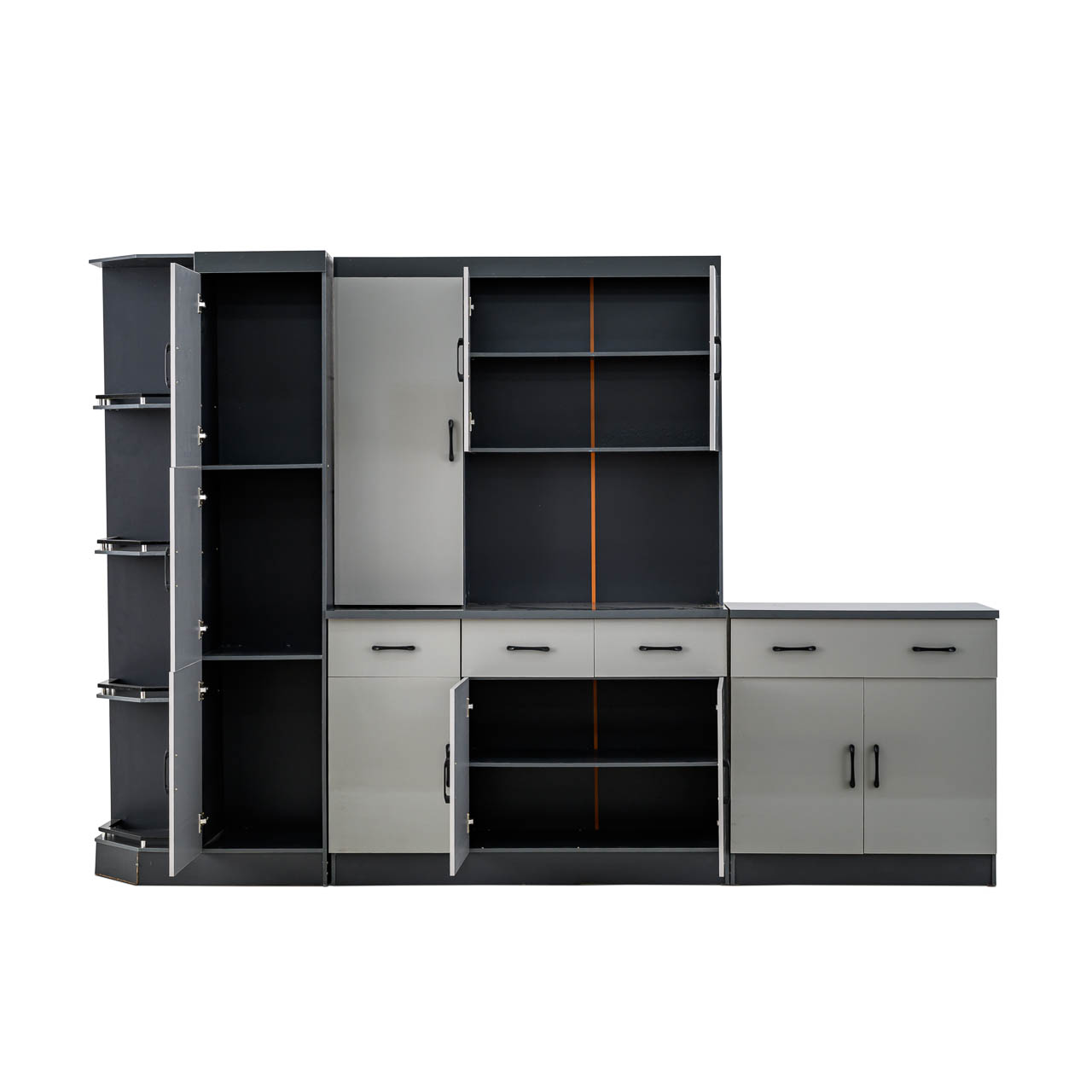 Ample Storage Space: Featuring multiple cabinets, drawers, and shelves, this set provides enough room for all your kitchen essentials.
