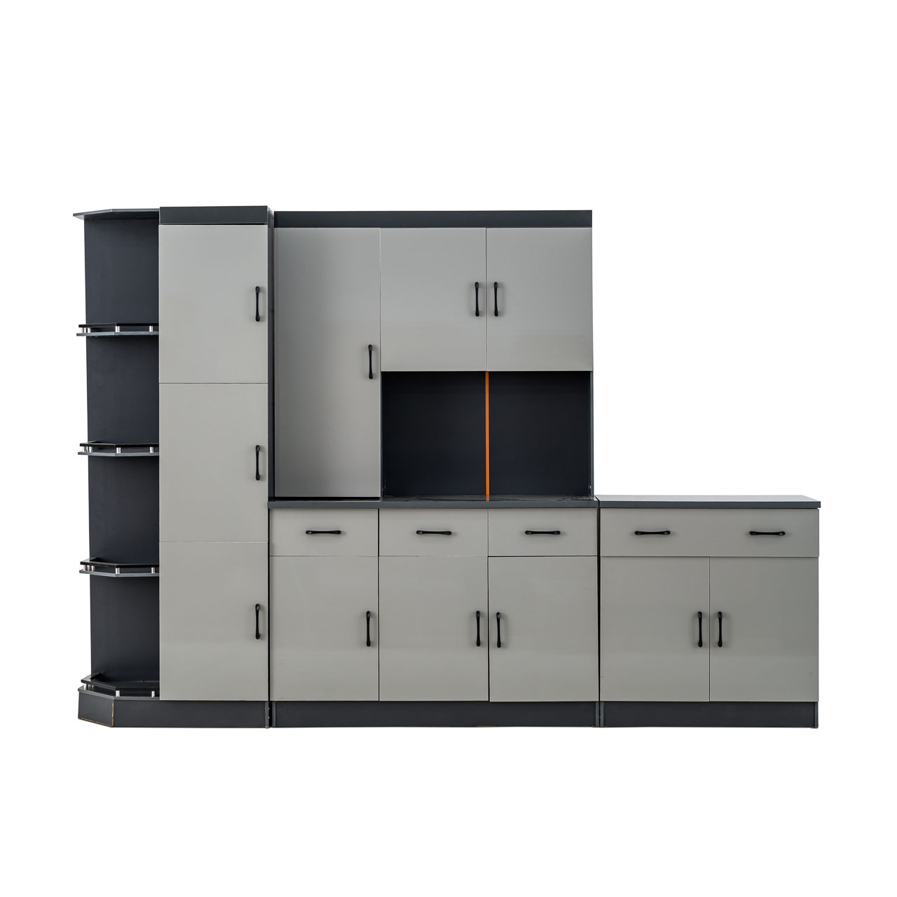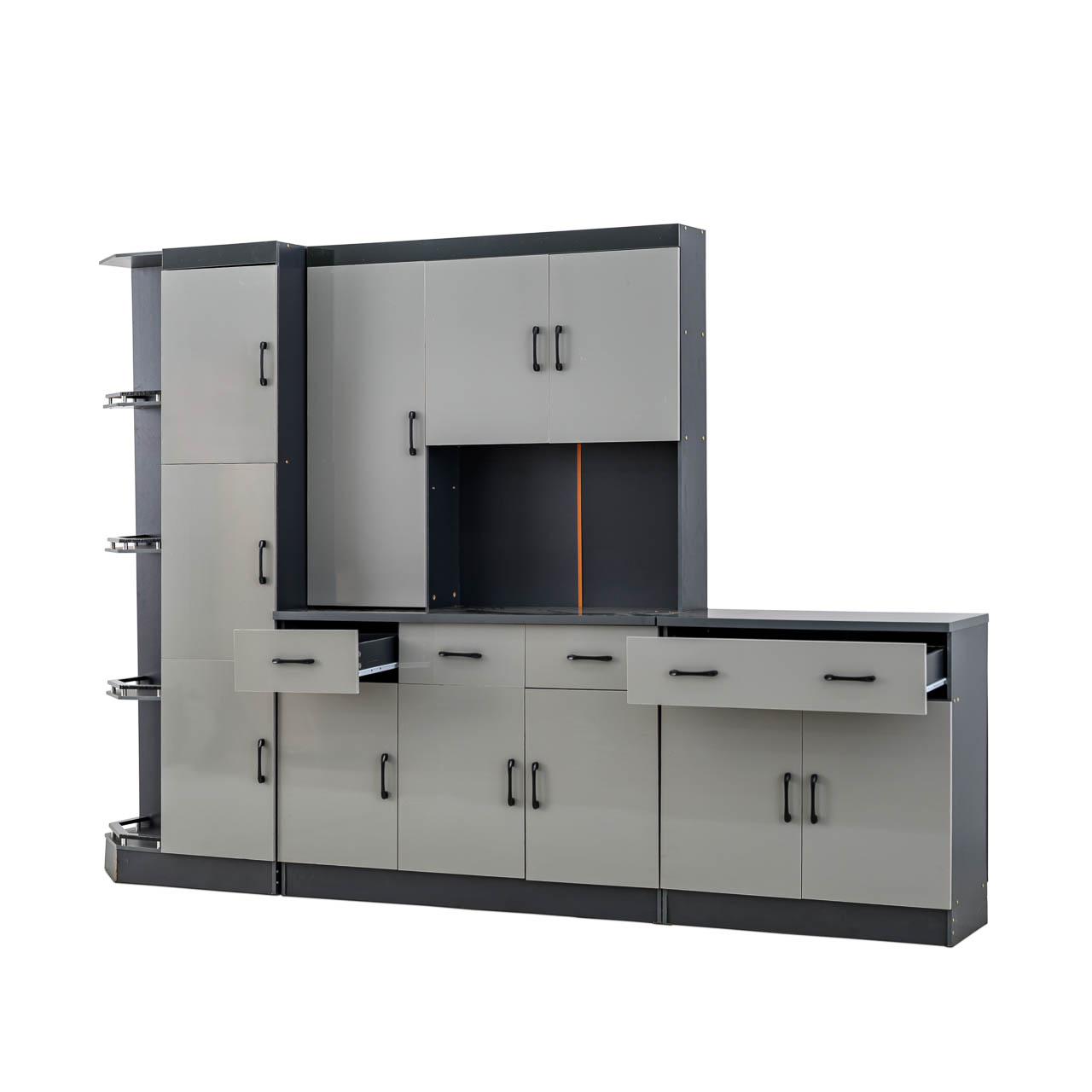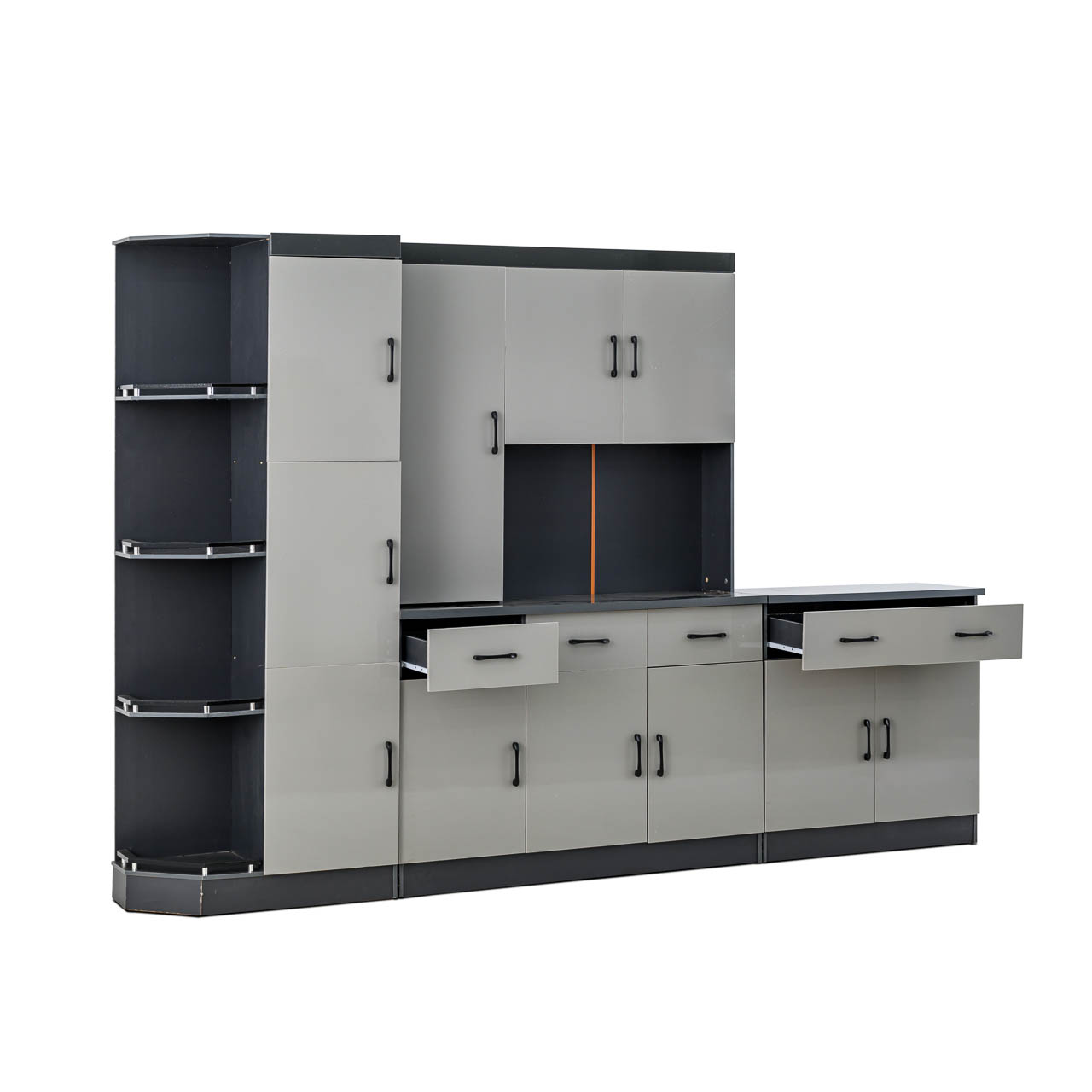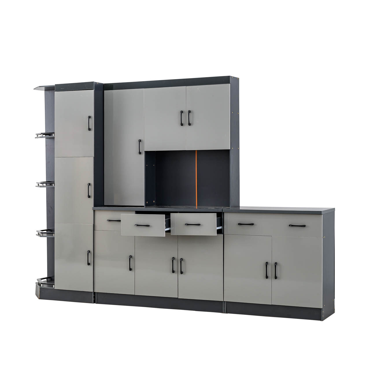Ample Storage Space: Featuring multiple cabinets, drawers, and shelves, this set provides enough room for all your kitchen essentials.