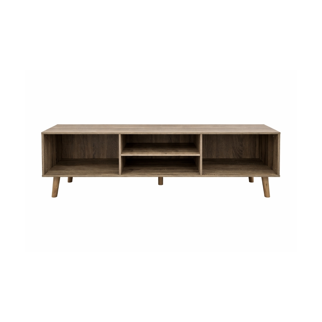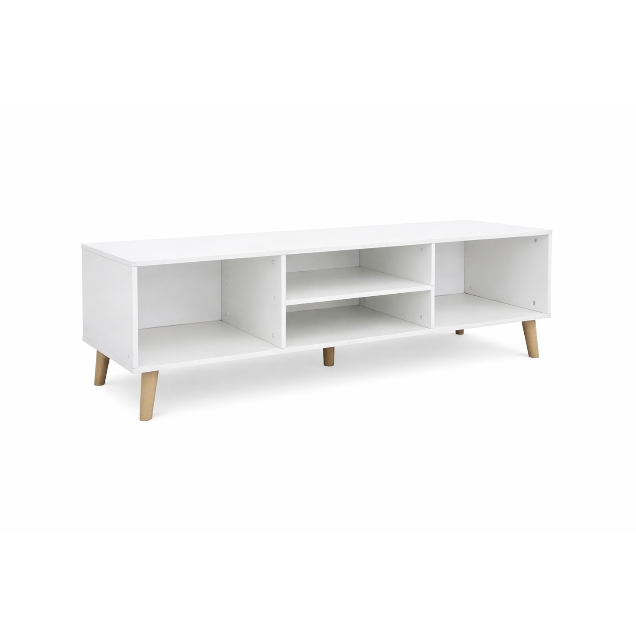 Constructed from durable materials and weighing 19 kilograms, this TV stand is both sturdy and lightweight enough to reposition as needed. The natural wood legs add warmth and contrast to the sleek body, enhancing the overall aesthetic. Its compact footprint makes it ideal for both large living rooms and smaller spaces.