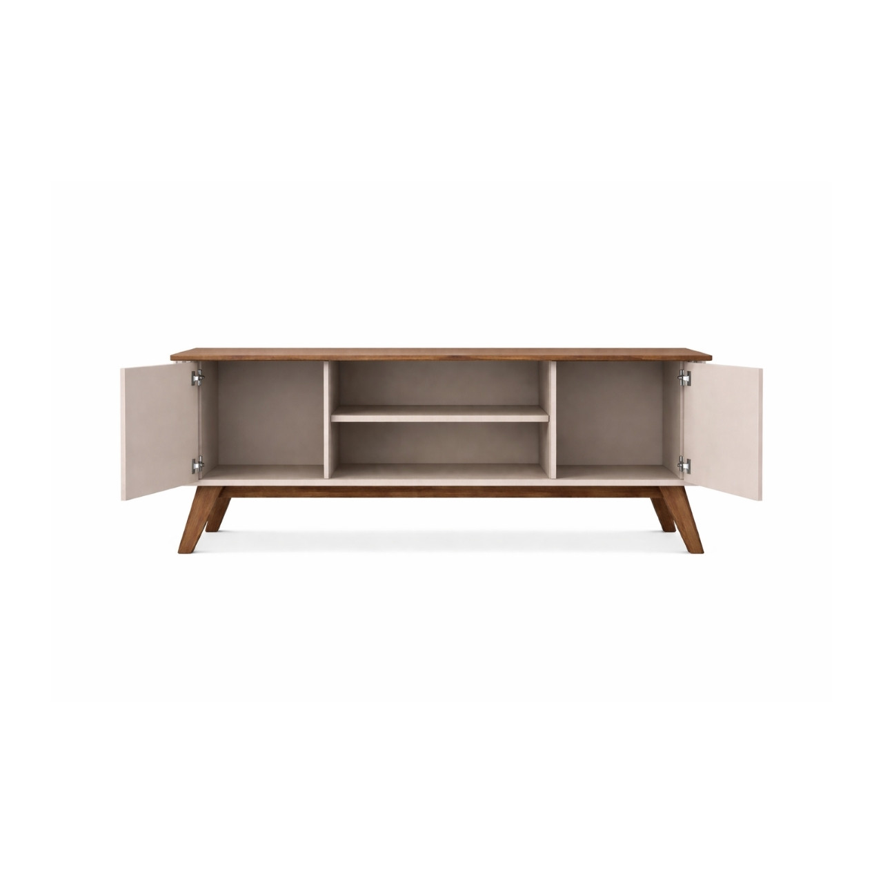 Maintaining the TV Stand Vitta is simple. Regular dusting with a dry cloth keeps the surface clean, while a wood-safe cleaner and microfiber cloth can be used for stubborn marks. Avoid abrasive products and excess moisture to preserve the finish and extend the life of the unit.